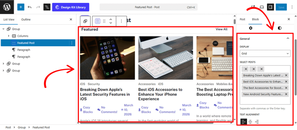 The Featured Post Block is a high-impact layout tool engineered to turn your most important content into a visual centerpiece. Ideal for hero sections, “Editor’s Choice” features, or breaking news highlights, this block moves beyond the standard post grid by creating a singular, immersive focal point. Its specialized design ensures that your top stories command immediate attention, providing a professional, magazine-style aesthetic that instantly elevates your homepage or landing page.