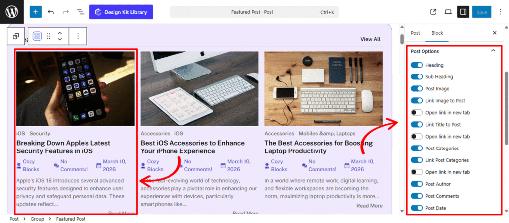 - Metadata Controls: Choose to show or hide the Post Author, Post Comments, and Post Date to keep your layout as clean or as detailed as needed.