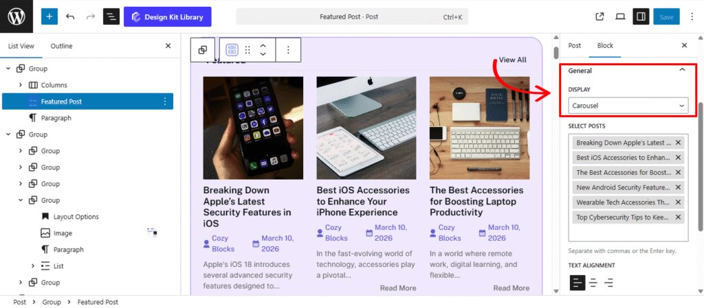 - Select Post: Take full control over which content is highlighted. This intuitive search interface allows you to manually curate your featured section by typing the title and selecting the exact post from your library.
